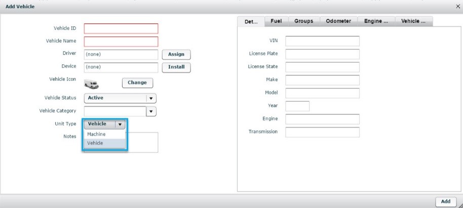 10. Select Machine or Vehicle from the Unit Type drop-down field.