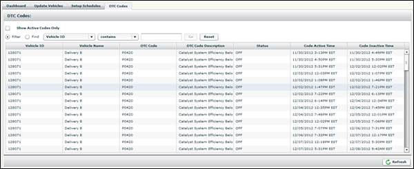 Note: To use the DTC Codes tab, you must a device that reports OBD-II bus data.