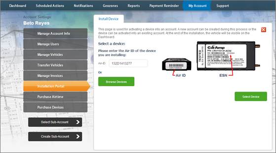 2. Enter the device Air-ID or click the Browse Devices button to select the Air-ID from a list.