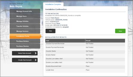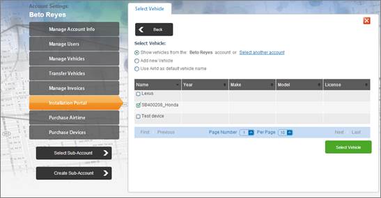 • Show Vehicles – Displays a list of prepared vehicles from the selected account.