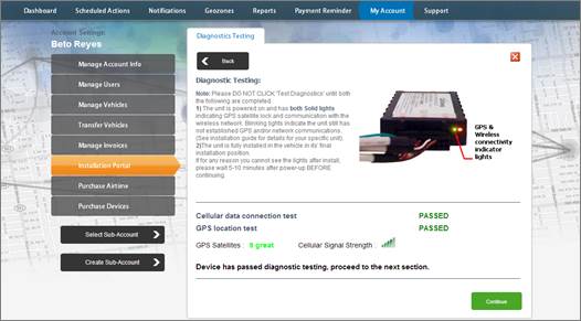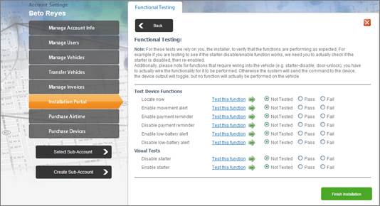 • If the GPS Location Test fails, you cannot continue with the Functional Testing.