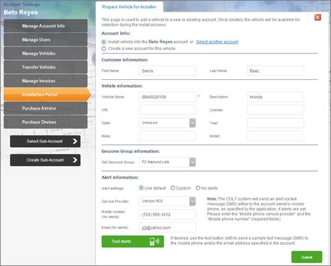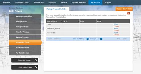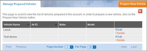 The Manage Prepared Vehicle function is used primarily to prepare a vehicle for device installation by an installer.