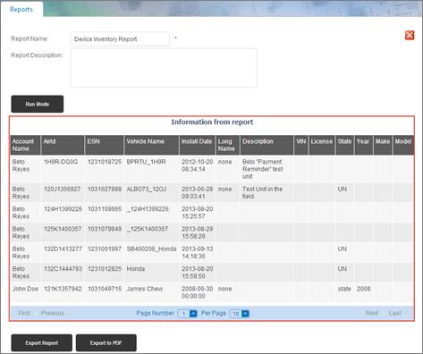 • LenderOutlook renders the report data and displays the report data directly below the Report Name and Report Description fields.
