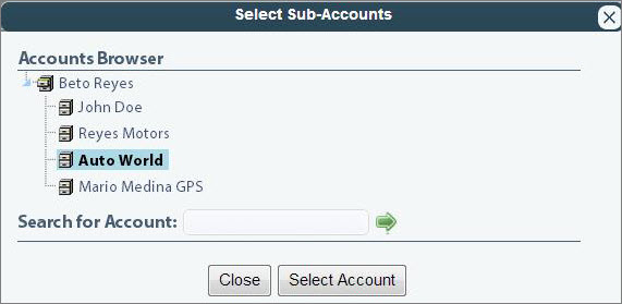 4. Select the sub-account from the list, and then click the Select Account button.